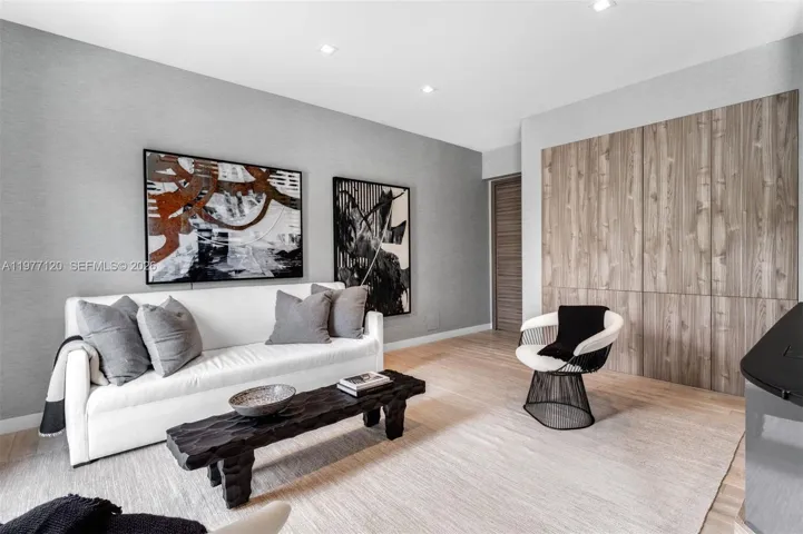 The open-plan kitchen is appointed with high-end finishes and top-of-the-line Wolf, Miele, and Sub-Zero appliances, flowing effortlessly into a spacious dining area and inviting family room. A formal living space, currently used as such, offers flexibility and could easily be transformed into a formal dining room. Just off the kitchen, a full laundry room and dedicated media room add convenience and functionality. The exquisite primary suite serves as a private retreat, complete with a sitting area overlooking the pool and patio. A chic office, which also functions as an ensuite bedroom, adds versatility and convenience. The first-floor guest suite impresses with its own kitchenette, living area, and direct access to the pool and patio, offering beautiful outdoor views. The backyard features an outdoor dining and seating area, and a side yard with room for a playground or garden. Ideally located near upscale dining and shopping, and just moments from the ocean, this residence embodies the ultimate Miami Beach lifestyle.