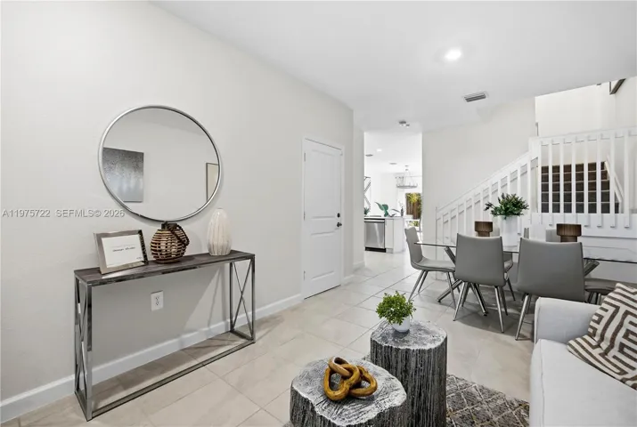 South Florida living at its best! This former builder model has never been lived in and is perfect as a starter home, second home, or investment. The 3BR/2.5BA layout offers modern comfort with a sleek kitchen featuring stainless steel appliances, a fenced rear yard, and a spacious primary bath with walk-in shower. Furniture not included but negotiable. Enjoy affordable HOA fees and great amenities including a clubhouse, fitness center, pool, and tot lot. Square footage approximate.