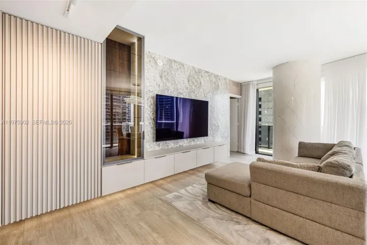 Fully furnished, renovated corner 2BR + Den, 2.5BA residence at Brickell Heights East in the heart of Brickell. Thoughtfully upgraded with custom built-out closets & drawers, crown molding, wood paneling details, a stone-quartz accent wall, upgraded lighting, electric window treatments, and a new LG W/D. Kitchen features new Bosch dishwasher + water filtration system. Highly desirable east and west exposures offer both sunrise and sunset views. Expansive wraparound balcony and floor-to-ceiling windows fill the residence with natural light. Excellent storage throughout. 1 assigned parking space.