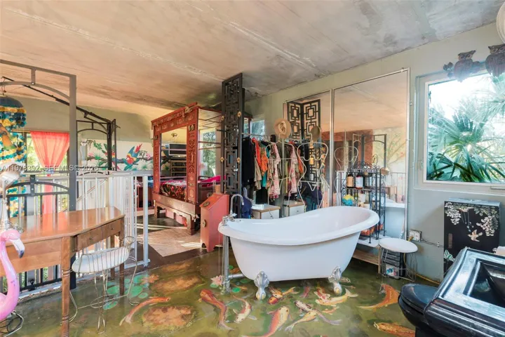 East Coast meets West Coast style with vibrant, retro flair and lush, natural landscaping with exotic fruit trees ***including banana, ice cream mango, loquat and chocolate pudding trees***. Unmatched Security & Investment in Prime Fort Lauderdale. This one-of-a-kind, concrete-stronghold home is 100% Hurricane-Impact and custom-built. The Key Features: Concrete walls, roof, and floors with commercial steel reinforcement. Includes a fully enclosed Bunker-Style Safe Room with a shower, toilet & Sink along w/ a separate entrance. Dramatic Design: 14′ ceilings, custom 10′ entry door, open-plan loft bedroom, and 24′ high ceiling in the living area. Outdoor Living: Multiple terraces/patios, including a tranquil Primary Suite sun deck, a fireplace-view patio, and a zen walkway leading to an outdoor fire pit. Fully-engineered ADU PAD (Accessory Dwelling Unit) is already poured with a separate electric panel—ready for immediate build-out (rental unit/in-law suite. Future Plans Available: Architectural plans exist for a 3rd floor, elevator addition, and downstairs bathroom. Prime Location: Smack in the perfect part of Ft. Lauderdale—all major points (Marina Mile, I-95, FLL Airport, Las Olas, Beach, Fishing) are just 15 minutes away. Invest in a legacy of Security, Quality. NOT a cookie-cutter. High elevation @ 2361 SW 18th Ave, Ft Lauderdale, FL LOW Electric Bills!