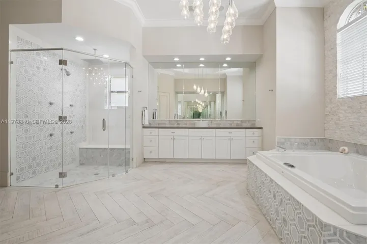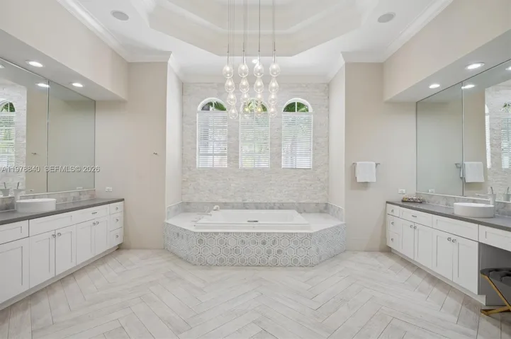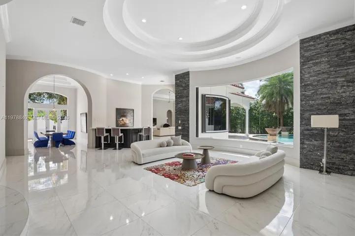 The residence spans nearly 6,000 square feet and was originally built in 2007, with an interior refurbish completed in 2016 featuring bespoke Italian design elements. The result is an elegant living environment that blends timeless elements with contemporary style.