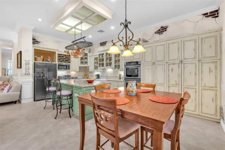 The chef’s kitchen is the heart of the home, featuring custom-built cabinetry, a large island, double sink, two ovens, and an oversized double pantry, perfect for both everyday living and entertaining. Major appliances including the washer, dryer, microwave, and refrigerator are 2 years old or newer, adding modern convenience and value.