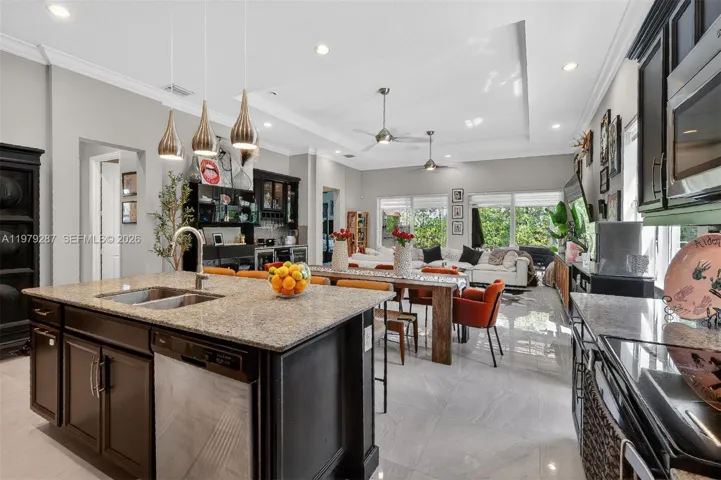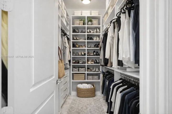 Impeccably maintained and truly stunning, this exceptional residence features ** SOARING 14-foot ceilings throughout the entire interior, including closets **creating a grand and airy atmosphere rarely found in today’s homes. The beautiful open floor plan is perfect for both everyday living and entertaining, complemented by a stylish wet bar that elevates the main living space. Thoughtfully designed with 8-foot doors, impact windows, and California Closets throughout, every detail reflects quality and elegance. Each bedroom features its own private bathroom, offering comfort and privacy for family and guests. Step outside to your private backyard retreat featuring a sparkling pool and beautiful pergola, perfect for relaxing or hosting gatherings. The home is situated on an oversized 7,200+ SqFt builder’s lot with ample room for an RV or boat along the side. Photos simply do not capture the true beauty and scale of this home, must see to appreciate.