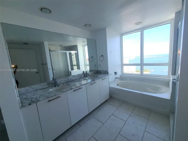UNIT WILL BE AVAILABLE ON AUG 1ST. Enjoy Amazing Bay views. large 2-bedroom corner unit. Stainless steel appliances, Granite counter tops, Porcelain Floors, state-of-the-art amenities, Gym, 2 large pools, jacuzzi, Business center, Party room, theatre & several restaurants downstairs. Walking distance to Mary Brickell Village—244 hr security. Expressways, trolley stops, and the Metro Mover are closed—vacant unit.