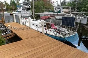 Enjoy true waterfront living on a deep-water canal with direct dockage for your boat. This 2-bedroom, 1-bath mobile home offers comfortable interior space paired with exceptional boating access. Two docks provide flexibility — one accommodates a sailboat, while the second offers additional docking potential (in need of repair). Inside, the home features a functional kitchen with gas stove, built-in microwave, double-door refrigerator, deep double-bowl sink with modern spray faucet, attractive backsplash, built-in pantry with sliding doors, wood cabinetry, deep cabinet drawers, and a custom buffet with wall-mounted bookshelves. Accent lighting and an open pass-through connect the kitchen to the spacious enclosed Florida room. The Florida room includes two ceiling fans and French doors that open to a patio overlooking the canal and boat dock. The outdoor patio is enhanced with sun sails for shaded relaxation, creating an ideal setting to enjoy the waterfront lifestyle. A single exterior door provides convenient access to the laundry/workshop shed. Additional highlights include central air conditioning and a screened front porch with roll-down curtains and decorative chandelier. This property offers affordable canal-front living with both indoor comfort and the outdoor access boating enthusiasts seek