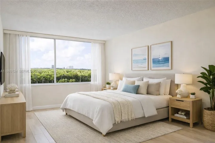 MOTIVATED SELLER! Best priced 2BR in the building. It is an excellent opportunity for a buyer looking to renovate and add value. Located in a bayfront building offering serene waterfront living. The property enjoys direct views toward the national park, creating a peaceful natural backdrop and unobstructed scenery. Ideally situated East of US1, 7 minutes drive to the Beach, located near dining, and shopping, just minutes to A1A and Highways. An exceptional opportunity to enjoy waterfront living with preserved natural views. 1 Parking spot. No special assessments.
