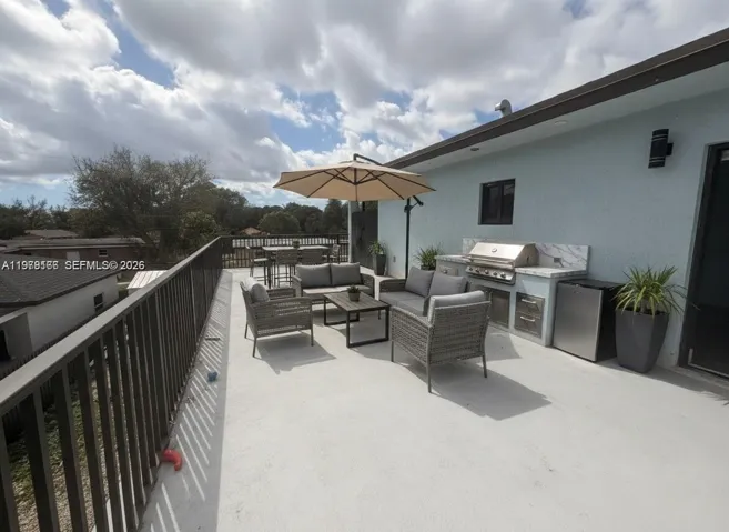 Fully remodeled single Family home. Featuring 3 independent spacious units: the main unit has bedrooms and 3 bathrooms (2 inside the house and 1 outside), the property also boasts two kitchens—one inside the home and an additional outdoor kitchen complete with a refrigerator. A second unit fully furnished 2bed/1bath unit and a third one 3 bed/ 1-1 bath located on the second floor with an independent access with washer & dryer within the unit 2 huge terraces, one of them with barbecue area . These 3 units has their own fully equipped kitchen, living/dinning room. Huge backyard with a gazebo and shed, perfect for outdoor activities and storage. The property is completely fenced for added privacy and security, and includes 6 PARKING SPOTS—4 within a secure, fenced space and 2 in the front of the home. Additional highlights include impact windows, a laundry room. This is a fantastic investment opportunity!