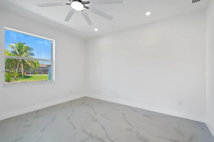 Exquisite canal-front residence located in the heart of Cape Coral, FL. Built in 2025, this modern home exudes contemporary elegance on a 0.12-acre lot, offering unparalleled craftsmanship and exceptional amenities. Spanning 1898 square feet of stylishly efficient living space, this home is graced by porcelain tile throughout. It features 3 spacious bedrooms with upgraded closets for your convenience, and 2 pristine bathrooms outfitted with high-quality fixtures, The kitchen is finished with quartz countertops and stainless-steel appliances, framed by upgraded cabinetry. Impact windows & doors throughout the home. Paved driveway and spacious 2-car garage, providing ample storage and parking space. The property boasts Gulf access via its canal front. No HOA. Own a piece of paradise!