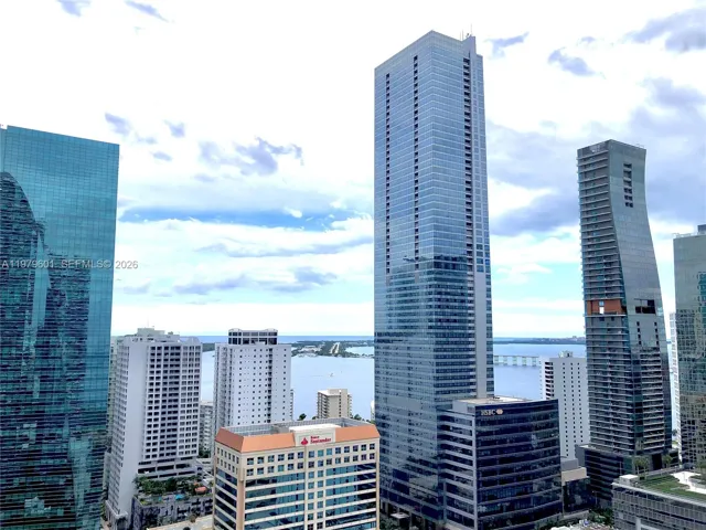 Spectacular east-facing city and bay views from this unit located just minutes from the booming Brickell area. Enjoy trendy restaurants, shops, and bars within walking distance. Beige ceramic flooring throughout and stylish furniture by West Elm. Versatile den can be used as an office or separate dining area. Open kitchen with countertop seating, perfect for entertaining, and top-of-the-line appliances. Spacious primary bedroom with terrace access and custom designer closets. Primary bathroom features double sinks, a separate tub, and shower. Washer and dryer inside the unit. Includes one parking space and valet for guests. Amenities include a rooftop pool and wet bar, state-of-the-art fitness center, sauna, business center, movie theater, party room, and valet. Metromover station half a block away. Unit is sold unfurnished.