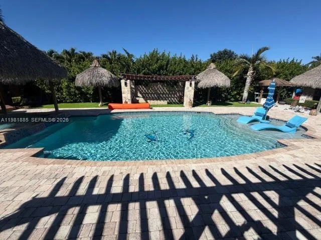 Stunning one-of-a-kind estate in Homestead situated on an oversized 30,119 sq. ft. lot, offering an exceptional blend of luxury, comfort, and resort-style outdoor living. This meticulously maintained property is loaded with upgrades, including a sprinkler pump, 16-camera security system, alarm system, two A/C units, separate garage A/C, water softener, two tankless water heaters, pool heater, saltwater pool, Jandy PDA pool and garden control system, and a 420-gallon fish tank.