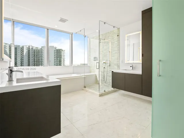 Spacious high-floor residence at Paramount Miami Worldcenter offering approximately 2,204 sq ft of interior living space with 10-foot ceilings, floor-to-ceiling windows, and expansive terraces with city views. Located on the 48th floor, just below the penthouse level, the unit offers exceptional light and panoramic views.
