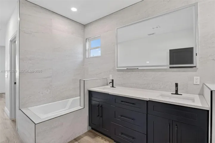 The primary suite offers a walk-in closet, double-sink vanity, LED mirror, and a stylish shower. Built with quality and durability in mind, the property includes impact windows and doors, premium finishes, and a spacious two-car garage.
