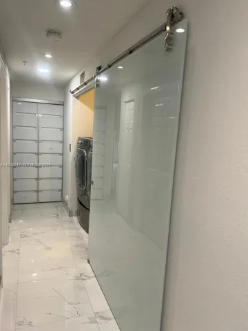 Spectacular and comfortable — no stairs, no carpeted floors, and located near Doral’s top schools. This modern and beautifully remodeled apartment features 3 spacious bedrooms, 2 full luxury bathrooms with walk-in showers and glass doors, a stylish kitchen with high-end appliances, and energy-efficient washer and dryer with drawer pedestals. Bright open living and dining areas with LED lighting throughout and a lovely balcony overlooking lush trees. White porcelain floors, two parking spaces (one assigned), ample guest parking, and condo fee included. Steps from the pool and school.