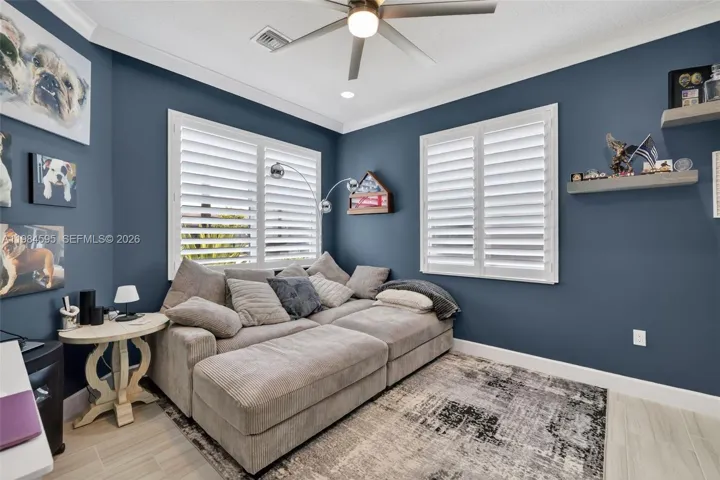 Experience luxury living in this stunning Palazzo, perfectly situated on a private lot backing up to the serene greenway in Valencia Grove. This exceptional home showcases extensive builder and seller upgrades throughout, offering both elegance and modern convenience. The upgraded kitchen features premium cabinetry and countertops, complemented by fully upgraded bathrooms that reflect the same level of sophistication. Porcelain tile flows seamlessly throughout the home, adding style and durability. A decorative built-in fireplace and custom wall unit create a stunning focal point in the living space, adding warmth and refined character. Step outside to a grand, one-of-a-kind custom back patio, complete with elegant pavers and an inviting fire pit—perfect for relaxing and entertaining while enjoying Florida’s mild evenings. Enjoy peace of mind with a whole-house generator, surge protector, and an impressive 300-amp electrical upgrade. Inside, you’ll find over 40 LED lights illuminating beautifully designed spaces enhanced by decorative molding, while custom molding adds a decorator touch and high-end finishes throughout. This home is a rare blend of luxury, comfort, and thoughtful upgrades in a prime location.