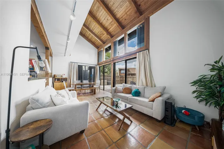 The home features beautiful Mexican tile flooring throughout, adding warmth and character, along with a modern kitchen equipped with granite countertops and stainless-steel appliances. The open living and dining areas create a welcoming atmosphere that flows seamlessly to the outdoor space.