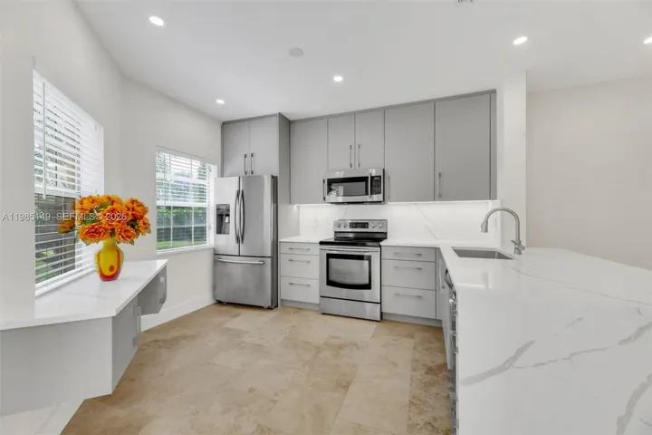 Inside, you’ll find elegant travertine and laminate flooring, a brand-new kitchen with quartz countertops and custom cabinetry, smooth ceilings with recessed lighting, and upgraded doors, trim, and custom closets throughout. Both bathrooms have been tastefully renovated with quartz finishes, and the A/C unit is just one year old. Under air 1,112 sq ft. Enjoy the convenience of being within walking distance to the community pool. Condo dues cover master insurance, roof maintenance, landscaping, water, alarm, and cable. Investor-friendly with flexible rental options—up to 4 times per year (30-day minimum).