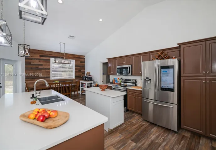 Welcome to this exceptional 4-bedroom, 2-bathroom home on a spacious, oversized corner lot. Designer touches include vaulted ceilings, contemporary lighting fixtures and accent walls as well as a stately front entryway and foyer. The spacious kitchen which features a substantial island, a stainless-steel appliance package, quartz countertops and abundant cabinet space. The generous primary suite provides a true retreat, a relaxing jacuzzi tub and an oversized walk-in shower. A designated laundry room also provides additional storage capabilities as does the attached 2-car garage.