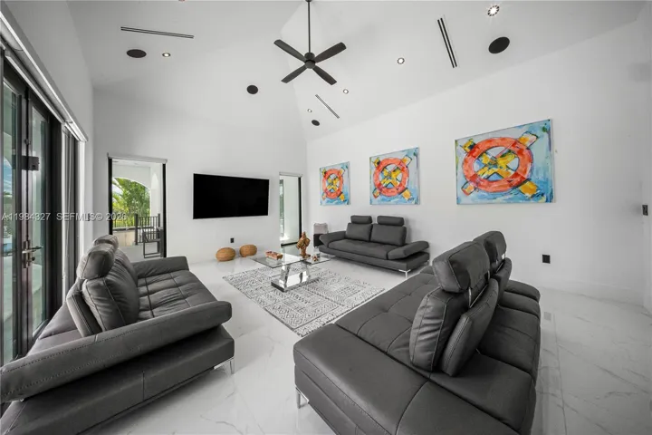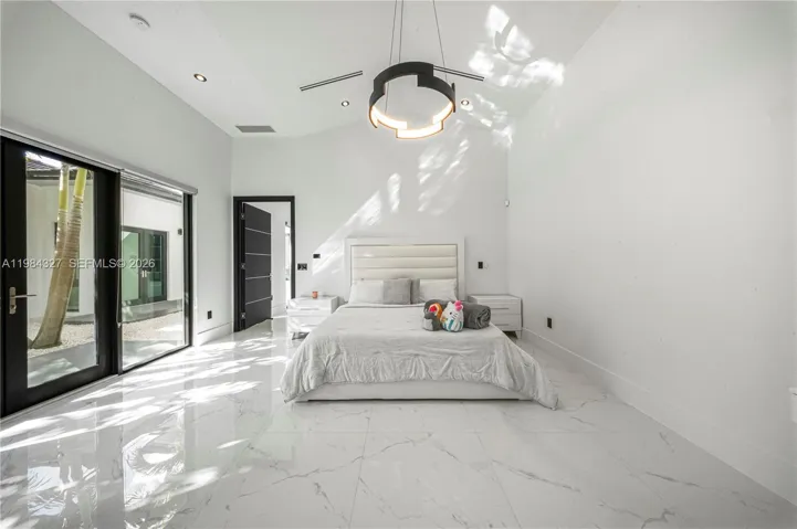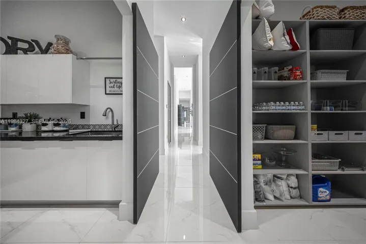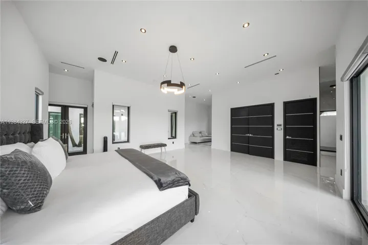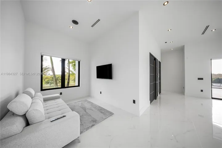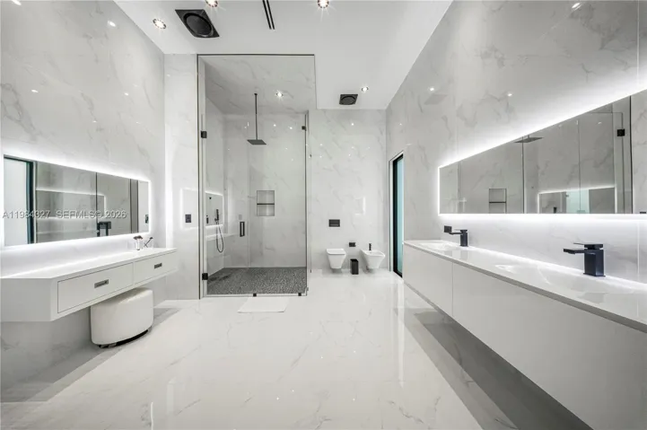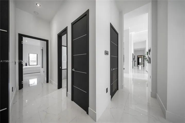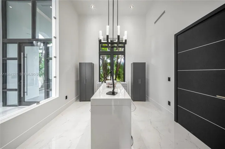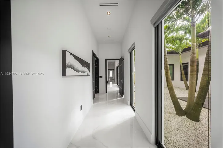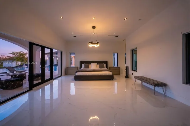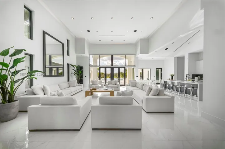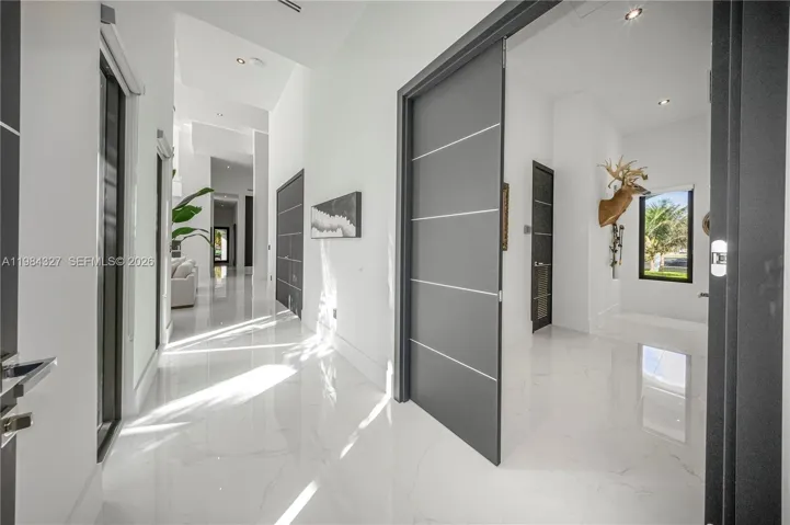 Welcome to Arrow Estate — a modern contemporary masterpiece on over 5 acres in Miami Dade County, near West Kendall and the Redlands. Built in 2023, this architectural gem offers 7 bedrooms, 6 bathrooms, and over 8626 sq ft, 11,835 adjusted sq ft, within 15,391 total sq ft under roof. A grand double-height foyer with 17-ft ceilings, floor-to-ceiling impact glass, and crystal chandeliers opens to expansive living areas and a chef’s kitchen with Liebherr refrigeration, Monogram appliances, induction cooktop, wine cooler, and oversized walk-in pantry. Bathrooms feature Duravit fixtures, smart mirrors, and bidet-equipped floating toilets. Ceramic tile floors run throughout, complemented by custom German doors. Four primary suites include spa-style baths, rainfall showers, soaking tubs, and custom closets; the main suite offers a lounge and pool access. Additional spaces include an office, media room, family room, art studio, and full laundry with LG appliances. Outdoors, enjoy a 20×40 infinity pool, sunken bar, built-in BBQ, and natural stone terraces ideal for entertaining. The property also features a 6-car garage, barn with kitchen and bath, casita, and multiple structures with future guest potential, plus 355 tropical fruit trees producing with AG exemption, a gas-powered generator with a 1,200-gallon tank, and no HOA.