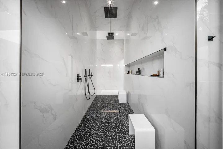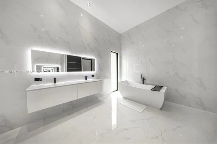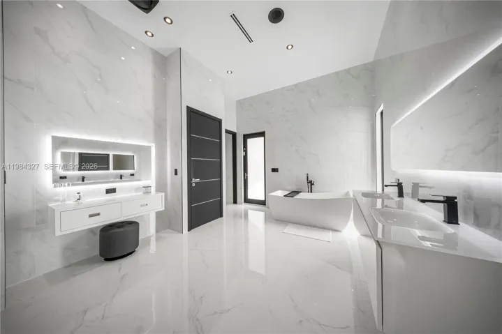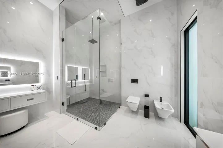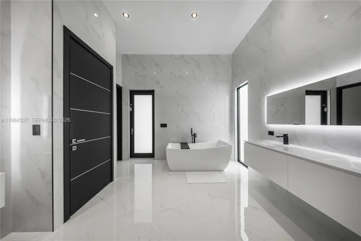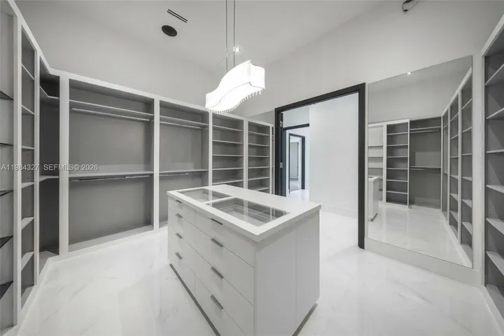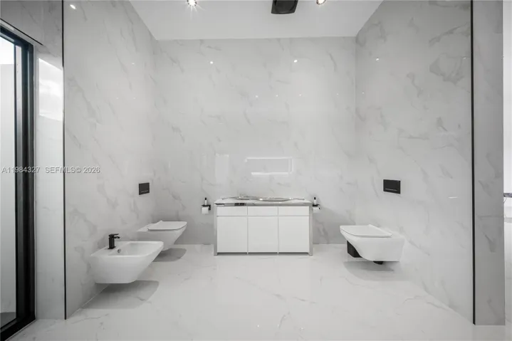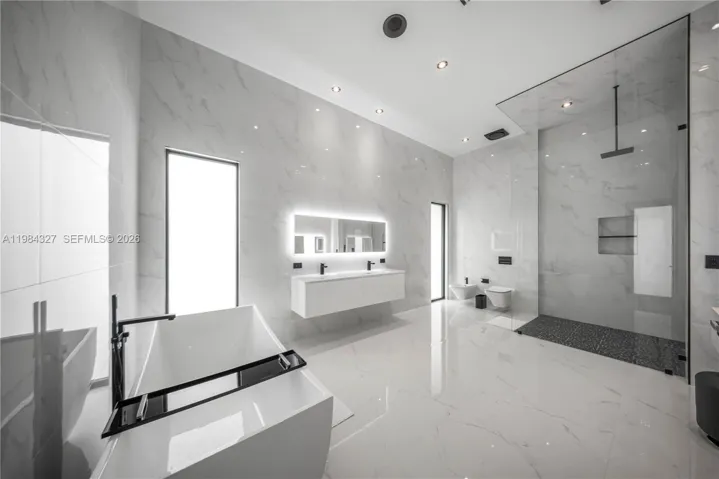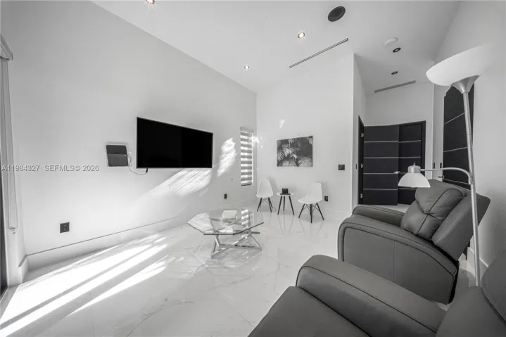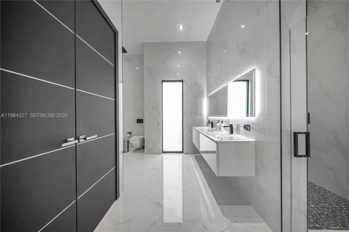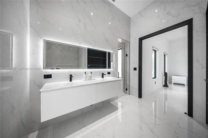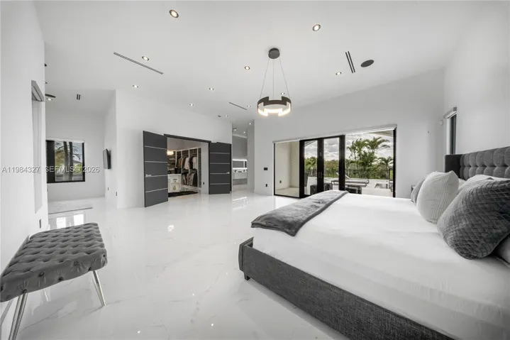 Welcome to Arrow Estate — a modern contemporary masterpiece on over 5 acres in Miami Dade County, near West Kendall and the Redlands. Built in 2023, this architectural gem offers 7 bedrooms, 6 bathrooms, and over 8626 sq ft, 11,835 adjusted sq ft, within 15,391 total sq ft under roof. A grand double-height foyer with 17-ft ceilings, floor-to-ceiling impact glass, and crystal chandeliers opens to expansive living areas and a chef’s kitchen with Liebherr refrigeration, Monogram appliances, induction cooktop, wine cooler, and oversized walk-in pantry. Bathrooms feature Duravit fixtures, smart mirrors, and bidet-equipped floating toilets. Ceramic tile floors run throughout, complemented by custom German doors. Four primary suites include spa-style baths, rainfall showers, soaking tubs, and custom closets; the main suite offers a lounge and pool access. Additional spaces include an office, media room, family room, art studio, and full laundry with LG appliances. Outdoors, enjoy a 20×40 infinity pool, sunken bar, built-in BBQ, and natural stone terraces ideal for entertaining. The property also features a 6-car garage, barn with kitchen and bath, casita, and multiple structures with future guest potential, plus 355 tropical fruit trees producing with AG exemption, a gas-powered generator with a 1,200-gallon tank, and no HOA.