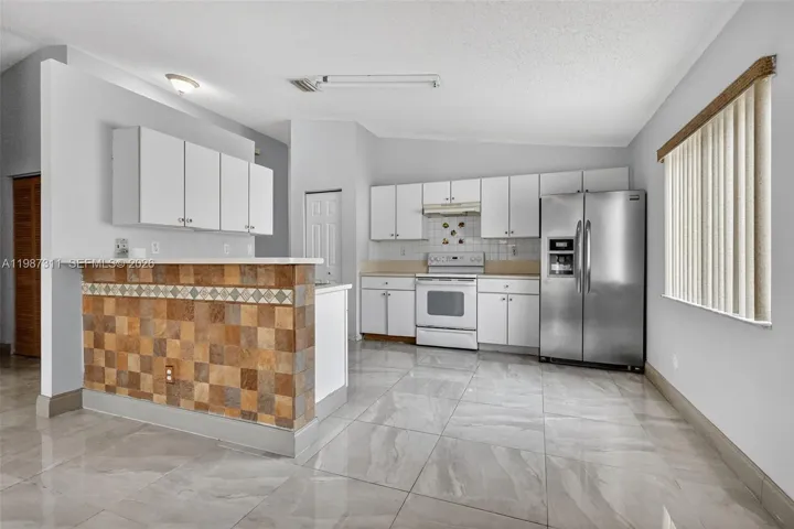 Welcome to this ideally located home offering both convenience and comfort! This spacious residence features 4 bedrooms and an extra-large living area with an open-concept kitchen, dining, and family room—perfect for everyday living and entertaining. Impact sliding doors fill the home with natural light and lead to a screened-in patio, creating a seamless indoor-outdoor experience. The primary suite includes a generous walk-in closet and a well-appointed en-suite bath. Additional highlights include a two-car garage, separate laundry area, ceramic flooring throughout, and ample closet space. The home is equipped with a brand-new metal roof (2025) and impact windows and doors for added peace of mind. Situated on a fenced lot with plenty of potential to customize to your taste, this property is located within a private, guard-gated community offering amenities such as a pool, lake, and pet-friendly environment. Conveniently close to schools, major shopping centers, dining, the Turnpike, and I-75—with the beach just a short 15-minute drive away—this home truly offers the best of both accessibility and tranquility. Easy showings, Call for additional information!!
