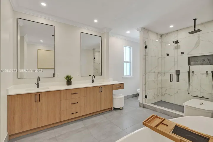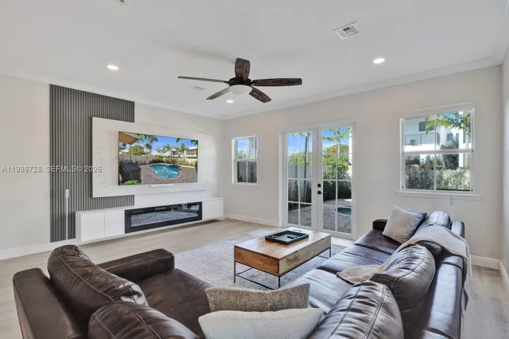 Turnkey and beautifully upgraded, this standout Villa Valentina corner-unit townhouse offers the ultimate Fort Lauderdale lifestyle. Enjoy your own private resurfaced pool with expanded pavers, plus convenient side access to the rear garden—ideal for entertaining and outdoor living. The home also features a private two-car garage with elevated storage and an EV charger. Inside, the 3-bedroom, 2.5-bath layout showcases soaring ceilings, quartz countertops, 2023 KitchenAid appliances, LED lighting, a sleek modern electric fireplace, and high-end designer finishes throughout. The primary suite is a true retreat with dual walk-in closets and a spa-style bath complete with a freestanding tub and dual rainfall showers. Impact glass, smart home features, refreshed landscaping, and HOA coverage that includes insurance add exceptional value and peace of mind. Just minutes from the beach, Las Olas, and downtown hotspots.