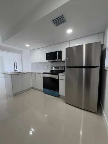 Everything is new in this apartment, refrigerator, microwave, stove. White quartz countertops and backsplash. White kitchen cabinets. Corner apartment with no neighbors on one side.