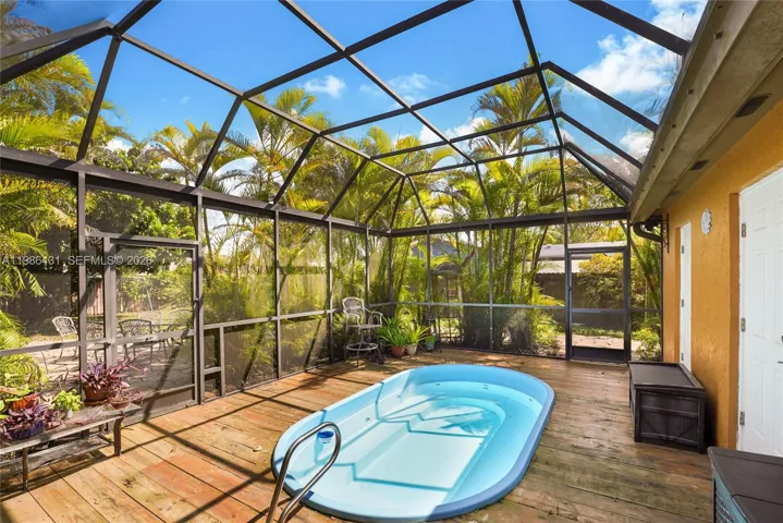 Discover a tropical retreat in sought-after Waldin Park Estates—where privacy, space, and lifestyle come together seamlessly. Situated on an expansive 15,340 sq. ft. corner lot along a quiet, low-traffic street, this impeccably maintained 4-bedroom, 2-bath residence offers the freedom of no HOA and the confidence of a 2019 roof and full impact windows and doors throughout. Step inside to a bright, open-concept layout enhanced by new flooring and abundant natural light, creating an inviting atmosphere ideal for both everyday living and effortless entertaining. Every detail reflects pride of ownership and meticulous care. Experience exceptional outdoor living on the screened patio with a heated spa—perfect for relaxing year-round. The lush, fully fenced backyard is a true tropical sanctuary, and the property features an impressive collection of fruit trees, including mango, pineapple, banana, passionfruit, longan, vanilla, Jamaican cherry, coconut, and pomegranate. With ample space to add a pool, the possibilities are endless. This is more than a home—it’s a private oasis offering tranquility, versatility, and the ultimate South Florida lifestyle.