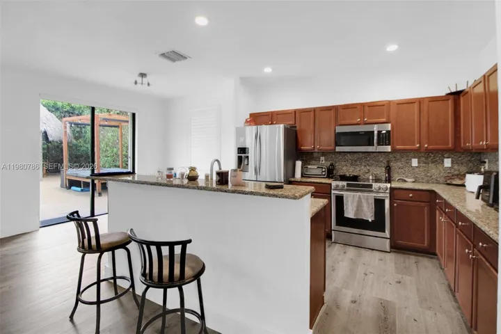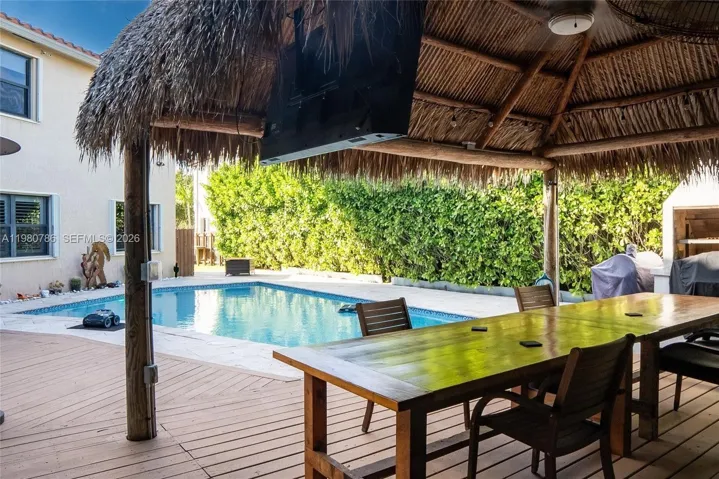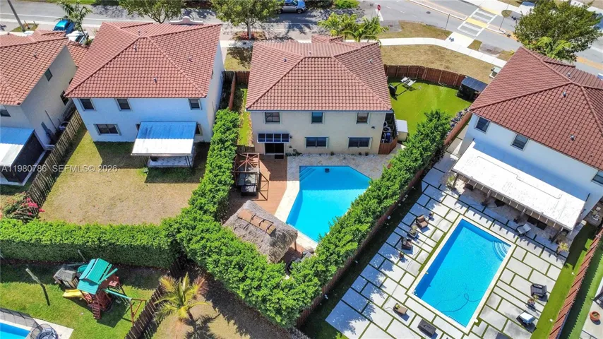 Step outside to your own backyard oasis where an oversized heated saltwater pool glimmers like a tranquil lagoon beside a charming tiki bar—perfect for entertaining or relaxing under the stars. Residents enjoy access to community amenities including a clubhouse, swimming pool, gym, playground, meeting room, and security. The HOA conveniently maintains the front yard, allowing you more time to enjoy your surroundings. Ideally located just minutes from parks, schools, restaurants, shopping centers, hospitals, and major highways, this home blends everyday convenience with a touch of charm.