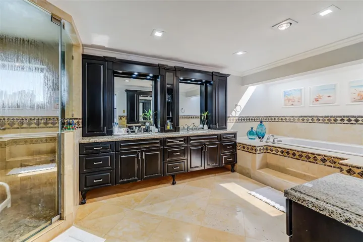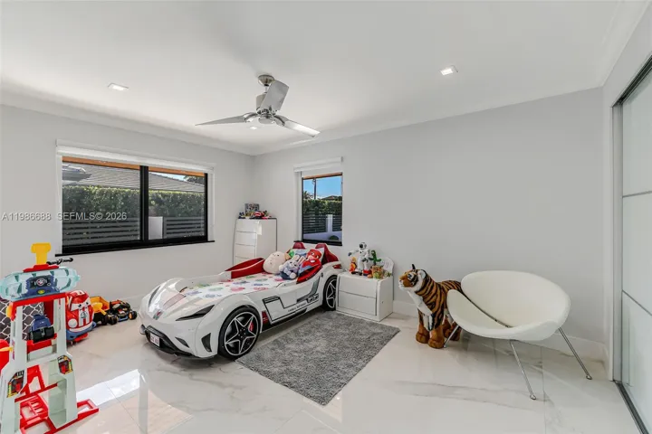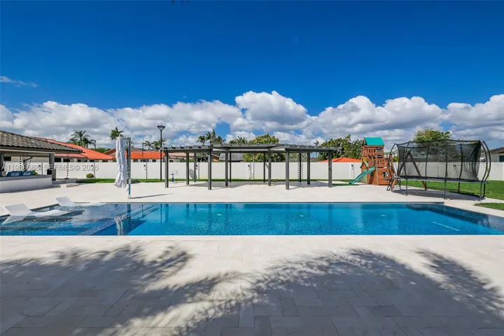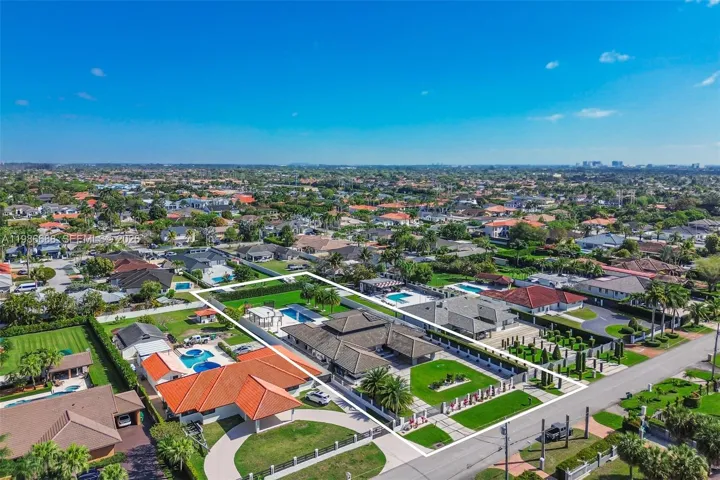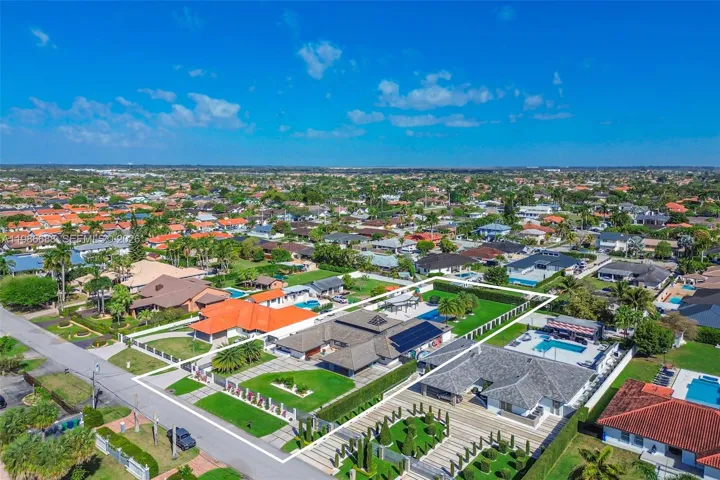 Welcome to this masterpiece of modern architecture! Experience the pinnacle of luxury in the prestigious JG Head’s Farms, offering a resort-style lifestyle on a sprawling 27,000 sq. ft. lot with the rare freedom of NO HOA. Enclosed by a secure perimeter wall and private gates, a grand circular driveway leads to this immaculate estate. Inside, the open-concept design is bathed in natural light through massive impact windows. Top-quality finishes include gleaming porcelain floors and soaring double-height ceilings with rich wood accents. Entertain in the elegant formal dining room or relax by the stunning floor-to-ceiling illuminated onyx-style wall. The chef’s kitchen is a showstopper, featuring premium black granite countertops with galaxy-style crystalline flecks, sleek custom cabinetry, and state-of-the-art appliances. The luxury extends to the primary suite with a custom-built walk-in closet, spa-inspired bathrooms with floating vanities, a dedicated exercise room, and a pristine laundry center. Outdoors, your tropical oasis awaits. Enjoy expansive covered terraces with an outdoor kitchen, perfect for al fresco dining. The beautifully manicured grounds center around a spectacular geometric pool, vast green spaces, and a private children’s playground. Offering unmatched privacy yet immediate access to the Turnpike and FIU, this move-in-ready gem is the ultimate Miami retreat! Contact us today to schedule your private showing and discover this Miami paradise!