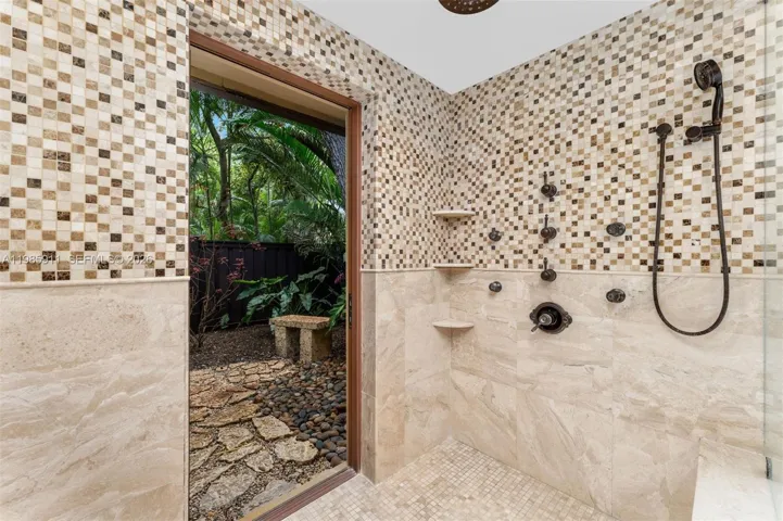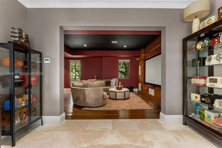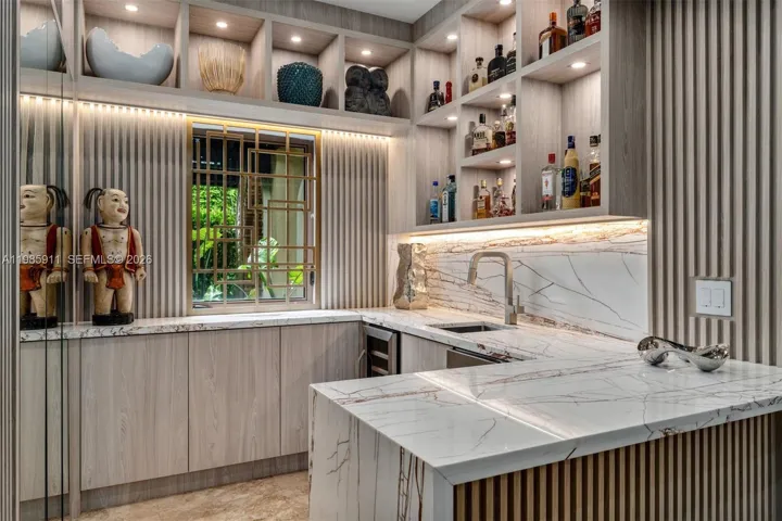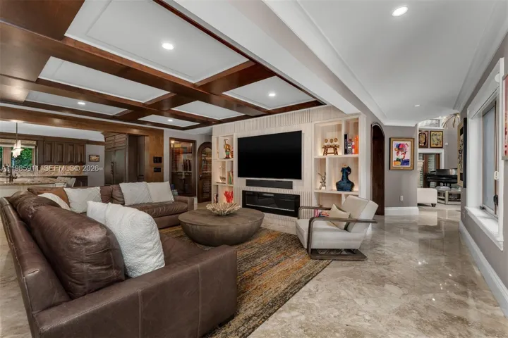 Set on a sprawling 1.12-acre lot in the heart of Pinecrest, this extraordinary grand Tuscan-inspired estate offers 6,624 SF under air and 9,771 total SF with 6 bedrooms and 8.5 bathrooms. A gated entry and sweeping palm-lined driveway lead to a private, resort-style compound defined by timeless Mediterranean architecture, a barrel tile roof, and lush, manicured grounds. The multi-structure layout surrounds a spectacular heated pool with resort-grade saltwater chlorination and spa, covered terraces and a fully equipped summer kitchen for seamless indoor-outdoor living. Interiors feature soaring ceilings, travertine, wood and stone floors, a dramatic atrium courtyard, formal living and dining rooms, and a spacious family room. The chef’s kitchen is equipped with granite countertops, custom cabinetry, Sub-Zero refrigeration, and a full Thermador appliance suite. Additional highlights include a custom bar, wine cellar, home theater, and private office. The main-level primary suite offers a sitting area and a spa-inspired bath with soaking tub, dual vanities, and walk-in closets. A separate guest residence with living area and kitchenette, plus staff quarters, provide flexibility. Modern comforts include impact windows, Control4 smart home and audio, Generac generator, mosquito system, 3-car garage, and more—delivering exceptional privacy and comfort in one of Pinecrest’s most desirable settings.