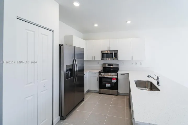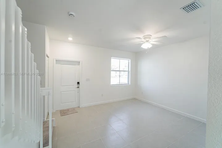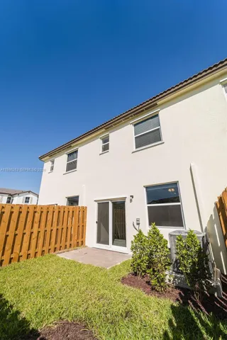 New construction (2024) two-story townhouse offering 3 bedrooms, 2 full bathrooms, and 1 half bath. The layout includes a combined family and dining area with a modern kitchen, plus a separate living room ideal for relaxation or entertaining. All bedrooms are located on the second floor. The kitchen features stainless steel appliances, quartz countertops. Ceramic tile flooring throughout the main level and carpeted bedrooms upstairs provide both style and comfort. Enjoy outdoor living, fenced patio, perfect for entertaining or unwinding. Conveniently located near schools, Turnpike Exit 2, retail shops, restaurants, a hospital, Amazon Distribution Center, and Homestead Air Reserve Base.