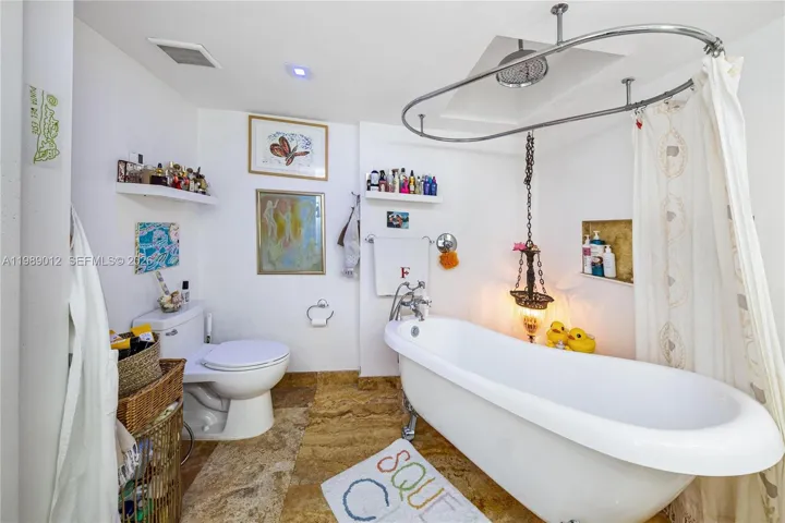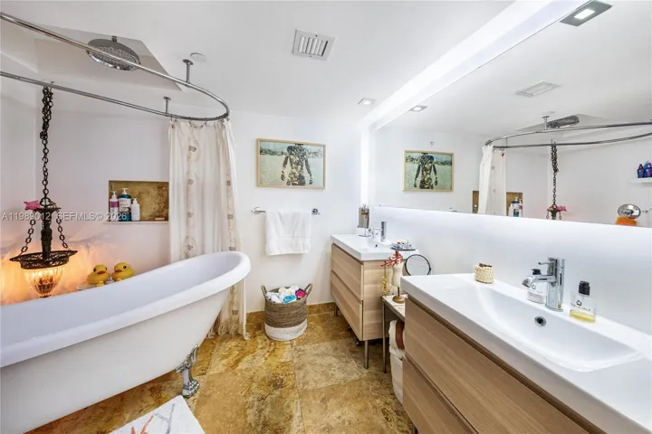 Beautiful 2BR/2BA retreat-style residence on the 5th floor offering 1,312 sq ft of bright, open living space with serene garden and pond views. Surrounded by lush greenery and birdsong, this home features expansive windows, natural light, and artistic finishes throughout, creating a peaceful and private ambiance. The spacious layout includes a comfortable living and dining area ideal for relaxing or entertaining. The primary suite offers a spa-inspired bath with a clawfoot tub and double vanities, providing a true retreat experience.