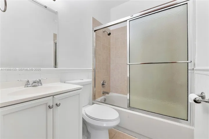 2BD/2.5BA condominium featuring impact windows, high ceilings, and a functional layout with a breakfast nook in the kitchen, granite countertops, custom-built closets, and two covered parking spaces.