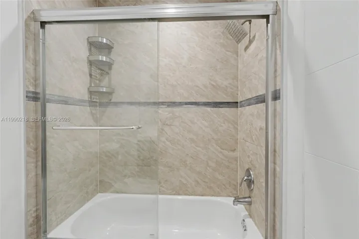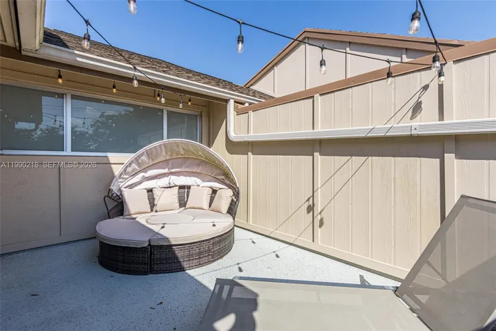 ASSESSMENT PAID IN FULL! This beautifully remodeled townhouse has been completely updated inside and out, including new roof and exterior walls. The 40 year inspection was completed and there is no special assessment. 2.5 BATHS. The interior features two spacious suites with impact windows/doors and a large open balcony. Walk-in closets. New waterproof vinyl flooring, modern lighting, and a stunning redesigned kitchen with sleek cabinetry, quartz counters & backsplash, upgraded smoked stainless appliances. The expansive living/dining area opens to a fenced patio through multiple sliding doors. Enjoy a charming front garden with seating, a laundry room with new washer/dryer, and a 1-car garage plus extra parking. Association allows converting the garage into an additional bedroom. Unit is located next to the pool.