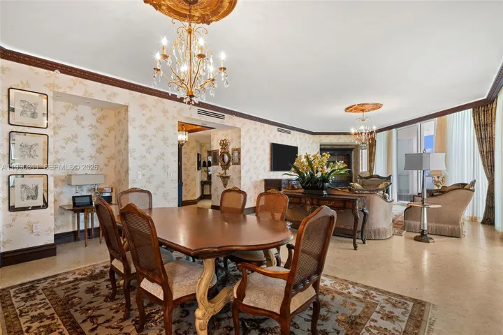 A private elevator entry opens into a sophisticated foyer leading to expansive living and dining areas filled with natural light. The residence features a desirable flow-through floor plan, showcasing breathtaking direct ocean views from the main living areas and picturesque intracoastal and sunset views from the secondary bedrooms. Floor-to-ceiling windows, high ceilings, and a spacious oceanfront terrace create a seamless indoor-outdoor setting perfect for relaxing or entertaining.