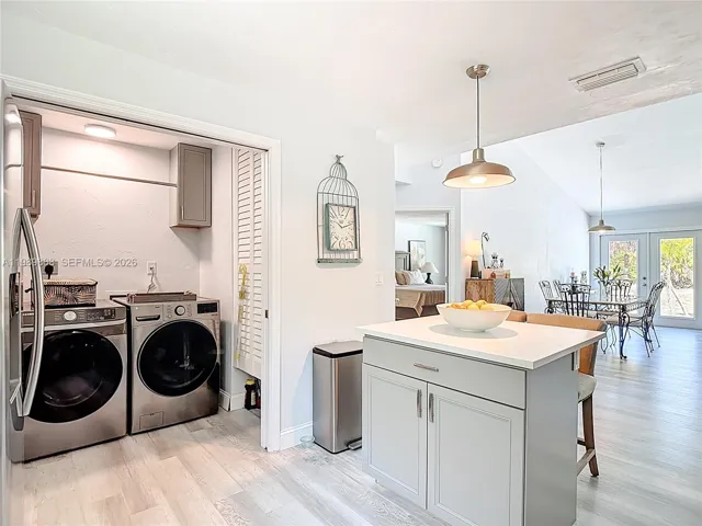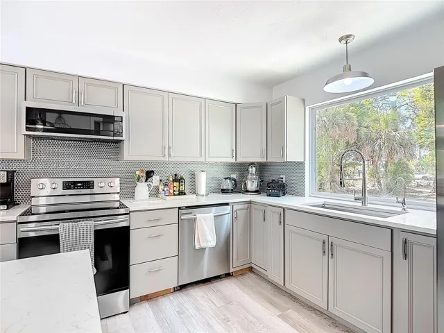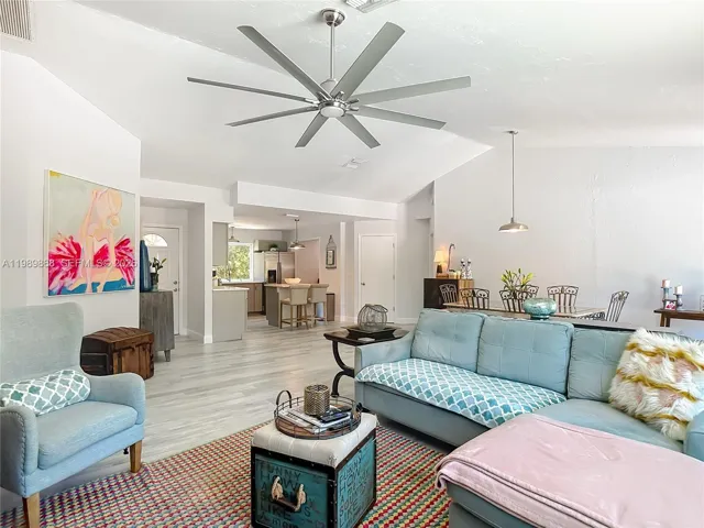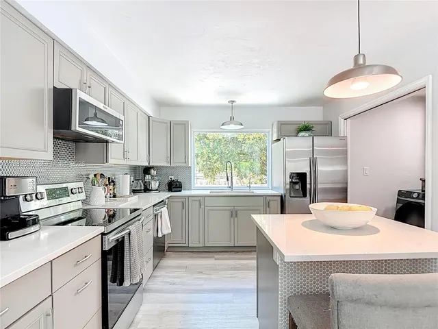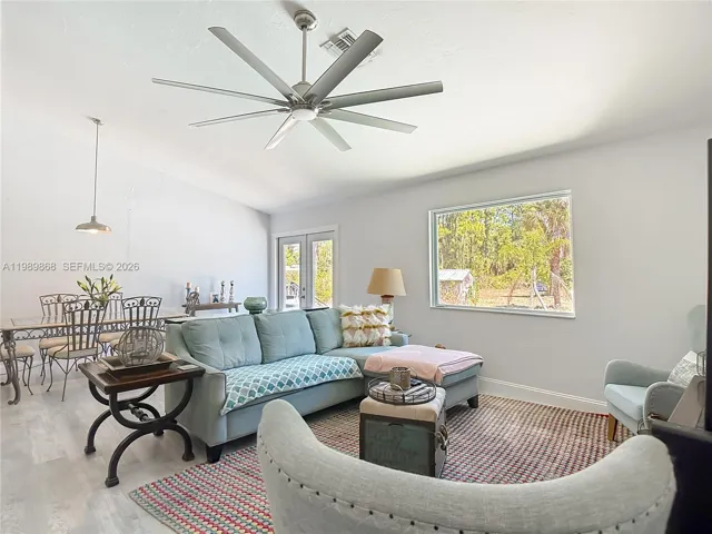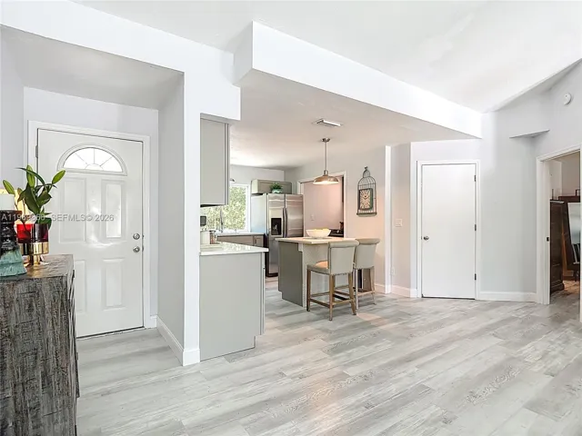 Situated on an expansive 2.72-acre homesite, this beautifully remodeled single-family residence offers privacy, flexibility, and exceptional upgrades throughout. Offering just under 1,500 square feet of living space, the home features stunning six-foot plank flooring and a bright, open layout designed for modern living. The fully renovated kitchen is a true centerpiece, showcasing quartz countertops, brand-new cabinetry, a stylish backsplash, and stainless steel appliances, all complemented by upgraded lighting and fixtures. Both bathrooms have been completely updated with a refined, spa-like feel, including a beautiful soaking tub in the primary bath. The home has been thoughtfully improved from top to bottom, creating a clean, cohesive, move-in-ready interior. Additional upgrades include a newer metal roof and full impact windows and doors, providing long-term durability, efficiency, and peace of mind. Step outside to your private outdoor retreat featuring a pool and expansive grounds with endless potential. Whether you’re looking for space to expand, store boats or RVs, or simply enjoy wide-open surroundings, this property delivers the freedom and versatility that’s increasingly hard to find. A rare opportunity to own a fully upgraded home on acreage with room to live, grow, and enjoy.