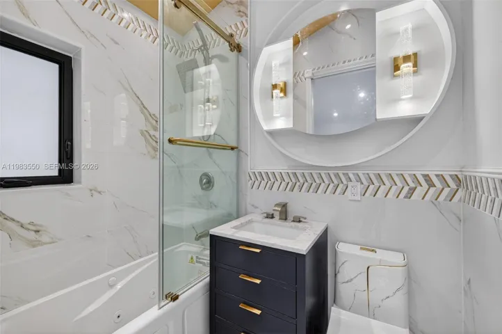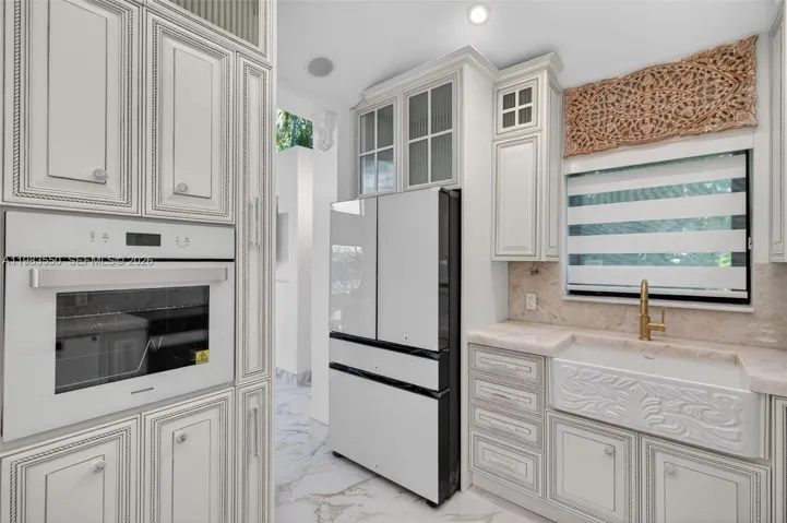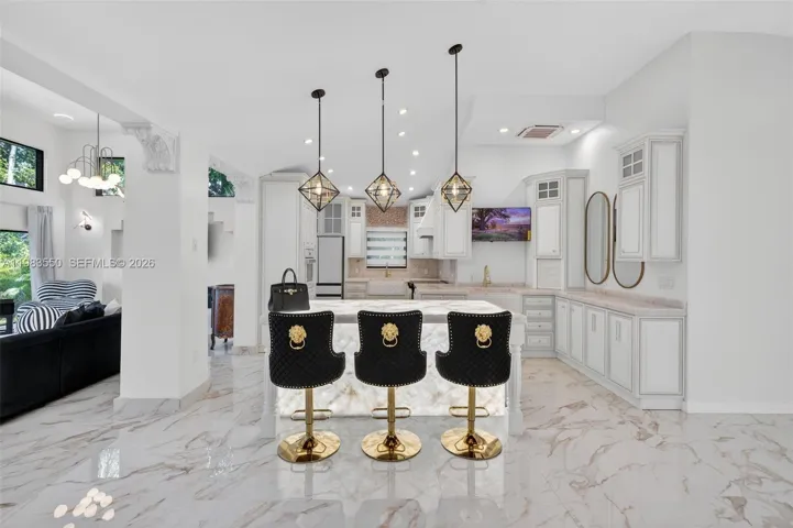 Brand New, New, New! 100% New Construction Stunning 2 Story Dream House w/ Pool and 13 ft High Ceilings! This 4 bed modern masterpiece showcases custom porcelain floors throughout and expansive windows that fill the home with natural light. The chef’s kitchen is a showstopper, featuring custom quartz countertops, a floating illuminated island with a hidden bar refrigerator, two oversized porcelain farmhouse sinks, and premium appliances including double ovens. This residence offers 4.5 spa-inspired bathrooms with custom vanity mirrors, jacuzzi porcelain tubs, and designer showers. A dramatic floating illuminated staircase anchors the home, complemented by smart TVs throughout and sleek frosted glass pocket doors in every room. Enjoy designer lighting with touch-dimmer controls, dual central A/C systems (2.5 & 3 tons). Outside your private oasis awaits with a custom 9-ft deep saltwater pool, white Italian porcelain mosaic tile, and waterfall fountain. The property is fully equipped with a sprinkler system for front and back yards, as well as a comprehensive surveillance security system with camera coverage. A rare opportunity to own a fully upgraded, luxury new construction home designed with style, comfort, and innovation in mind. Seller financing available. A must see!