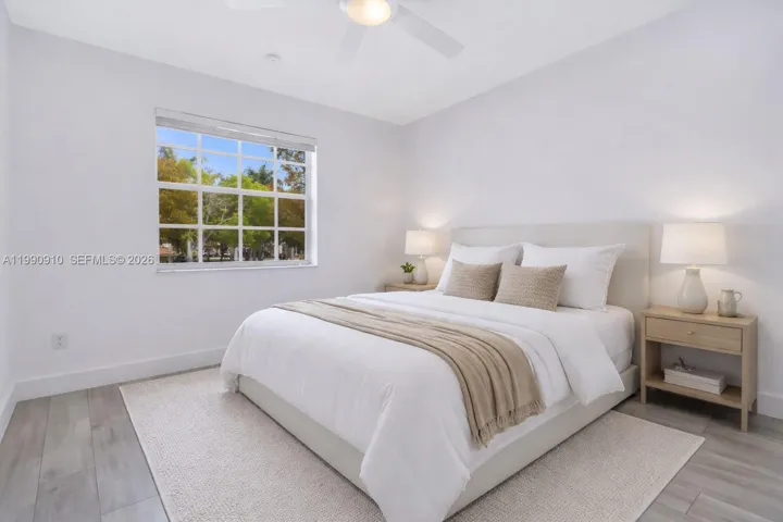 Discover the ultimate rental gem in the guard gated Santorini, Vizcaya community! This charming 3 bedroom 2.5 bathroom townhouse with 1 car garage! This beautiful townhouse offers an airy, open layout with a beautifully upgraded kitchen that flows into light-drenched living areas. The kitchen features waterfall quartz countertops, stainless steel appliances and pantry. LED recessed lighting throughout first floor. Vinyl wood floors throughout all bedrooms and common areas. The standout feature is the expansive paved fenced-in backyard, providing your own personal sanctuary perfect for hosting weekend BBQs or quiet afternoons. Enjoy the added convenience of being directly across from community amenities, including the pool. Ideally located near top-rated schools, shopping, dining, and major highways. Available asap.