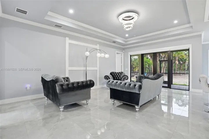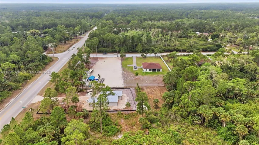 Golden Gate Estates home on 2.75 acres featuring a split-bedroom layout, a spacious kitchen with ivory soft-close cabinets and beautiful countertops, plus a office room. Enjoy high ceilings and recessed lighting throughout. The property offers a large covered patio, garage, and a fully fenced lot with a private entrance. The grounds have been prepared for parking—perfect for an RV, boat, or semi-truck. Impact windows throughout for added security and efficiency.