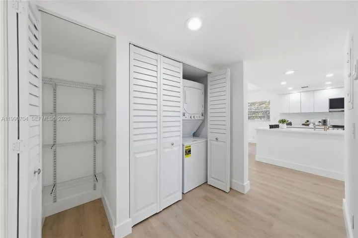 Experience the perfect blend of comfort and modern design in this beautifully updated 2BD/2BA corner unit with serene golf and garden views. The open-concept layout enhances space and natural light, creating a bright and airy feel throughout. NEW!! NEW!! AC, WATER HEATER, WASHER/DRYER. The new kitchen features ceiling-height custom cabinetry, quartz countertops, a breakfast nook, stainless steel appliances, and LED lighting. Elegant waterproof vinyl flooring flows seamlessly throughout. The oversized primary suite offers a walk-in closet and a remodeled en-suite bathroom with dual sinks. Both bathrooms feature modern finishes. Located in the desirable 55+ Century Village community with 24-hour gated security and resort-style amenities, including a clubhouse, fitness center, heated pools, tennis courts, theater, and shuttle service. Move-in ready!