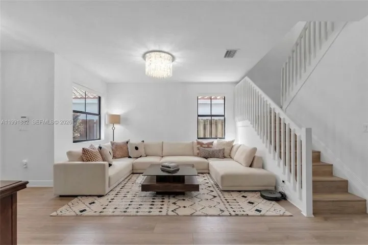THIS is the one you’ve been looking for! Welcome to this elegant 4-bed / 4 bath residence in the private & gated community of Las Ramblas. Nearly 3,000 SF, this elegant home offers refined comfort & design, with elevated finishes throughout. The bright open layout is enhanced by newly installed flooring, statement chandeliers, & expansive windows that fill the home with natural light. A beautifully renovated kitchen designed for both everyday living and entertaining, features modern conveniences, while the spacious primary suite features a generous walk-in closet & a beautifully appointed bath. The primary ensuite evokes a spa-like experience, offering dual vanities, Jacuzzi tub & a separate shower for ultimate relaxation. Outdoors, a private terrace provides the perfect setting for entertaining or unwinding, complemented by a lush front garden & smart home security features for added peace of mind. An oversized 2 car Garage features also ample storage. Residents of Las Ramblas enjoy access to resort-style amenities including a pool, tennis courts, fitness center, resident lounge, & 24/7 gated roving security. Ideally located just minutes from CityPlace Doral, Top-rated schools, & premier golf courses, this home offers a seamless balance of luxury, convenience, & lifestyle. Minutes away from FIU, newly finished hospitals, & the Miami International Airport. Schedule your private showing & experience firsthand the perfect balance of comfort and sophistication.