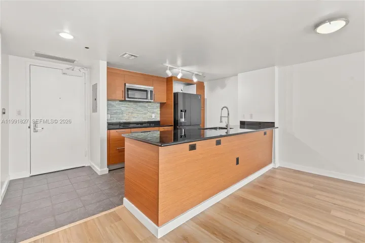 Perched on the 41st floor, this fully renovated home showcases sweeping, unobstructed views of Biscayne Bay, the Port of Miami, and the city skyline through floor-to-ceiling windows and a stunning wraparound balcony. Inside, enjoy wide-plank flooring, a sleek open kitchen with warm wood cabinetry, black granite countertops, and stainless steel appliances, along with spa-inspired bathrooms designed with refined, modern finishes.