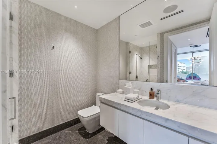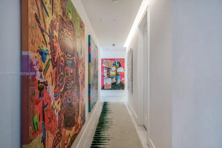 Features include private elevator foyer, expansive living and dining areas with floor-to-ceiling glass, oversized terraces, custom millwork, premium stone finishes, and a fully equipped chef’s kitchen with top-of-the-line appliances. The primary suite offers a spa-inspired bath, Molteni closets, and direct ocean views.