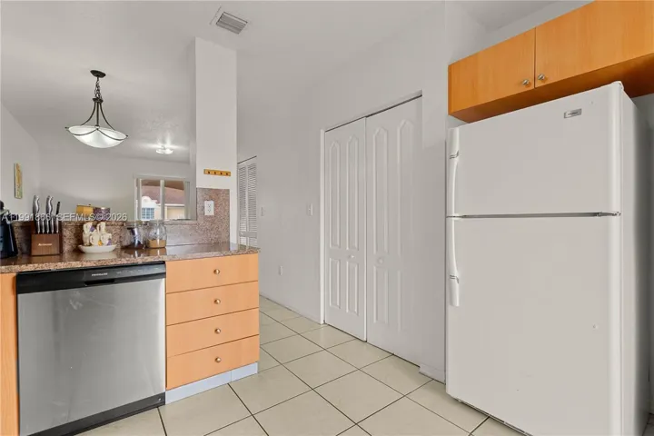 The layout features a large master bedroom with generous walk-in closets, tile flooring throughout, and a bright, open feel in every room. The kitchen is equipped with granite countertops and all appliances included, along with an in-unit washer and dryer for added convenience. A/C was replaced in 2024, providing peace of mind for the new owner.