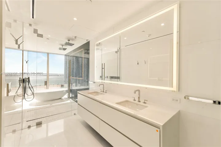 Priced to sell ! Aston Martin Residences brand new 21st floor. The flow through the unit offers the ultimate in luxury and modern design, with stunning Biscayne Bay and Miami River views to the South from living areas and primary suite. Downtown views to the North from den and secondary bedrooms. The showstopper is the generous great room and terrace with beautiful water views, perfect for enjoying outdoor dining. Bulthaup kitchen, with top-of-the-line Gaggenau appliances, and breakfast area are at the heart of the unit, flowing seamlessly into the great room and terrace. Primary suite with ample closets, a spa bath and soaking tub are positioned with pride of place to enjoy the water views. 3000+sf 3-bed/4.5-bath split plan unit, with a spacious private elevator lobby, laundry/staff quarters and a den, featuring Thassos marble flooring. Sq Ft in tax record is incorrect.
