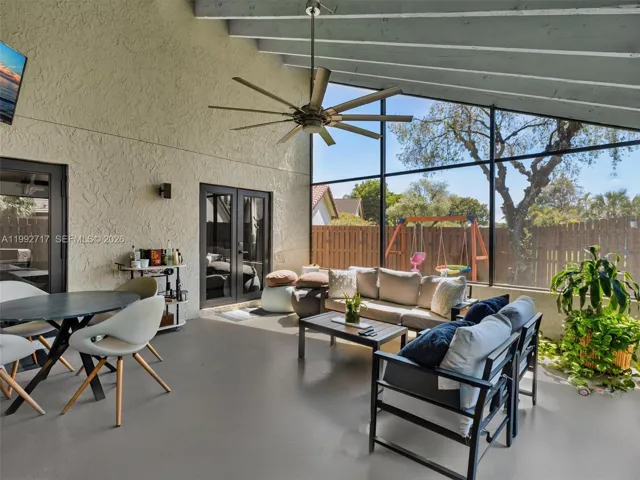 Fully reimagined one-story residence tucked away on a quiet cul-de-sac in Weston. This beautifully updated home offers 2 bed, 2 bath, and 1,325SF of bright living space with a split floor plan. The interior features vaulted ceilings, high baseboards, impact windows and doors throughout, and elegant vinyl flooring flowing throughout the home, creating a modern and airy atmosphere. The open kitchen has been fully updated with quartz countertops and a modern waterfall island, seamlessly connecting to the main living areas and creating a perfect space for everyday living and entertaining. Both bathrooms have been fully renovated with contemporary finishes. Enjoy a wonderful indoor-outdoor living experience with a spacious screened and covered patio of approximately 400SF, highlighted by a beautiful vaulted wood-beamed ceiling. The newly fenced backyard provides excellent privacy and enhances the peaceful setting of this quiet cul-de-sac lot. The front of the home features charming curb appeal with a welcoming courtyard entrance and new brick pavers. Additional features include an impact front door with WiFi keyless entry and a Ring doorbell. Ideally located in the heart of Weston near top-rated A+ schools, parks, golf courses, shopping, dining, and convenient access to major highways. Don’t miss this opportunity, this one won’t last long!