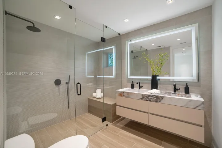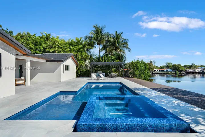 Nestled within the prestigious guard-gated community of Enchanted Lakes, this impeccably renovated waterfront residence embodies refined South Florida living. Thoughtfully updated throughout, the home features a new 2025 roof, upgraded electrical and plumbing systems, new insulation, drywall, ductwork, and two high-efficiency air conditioning systems. The interiors are defined by a seamless open-concept layout with great ceilings and elegant floor-to-ceiling Italian doors that flood the home with natural light. A MiaCucina Italian kitchen is complemented by brand-new Dacor luxury appliances, while spa-inspired bathrooms, wide-plank flooring, and sophisticated LED lighting enhance the home’s modern aesthetic. Outdoors, a true waterfront lifestyle unfolds, where tranquil lake views set the backdrop for a newly designed pool, expansive deck, and newly constructed seawall with an expansive deck spanning the entire waterfront—creating an ideal setting for both relaxation and entertaining. The home reflects an actual area of 3,104 square feet per tax records; buyers are advised to verify all measurements. Perfectly positioned just minutes from Aventura, pristine beaches, major highways, and top-rated schools, this residence offers a rare blend of luxury, comfort, and convenience.