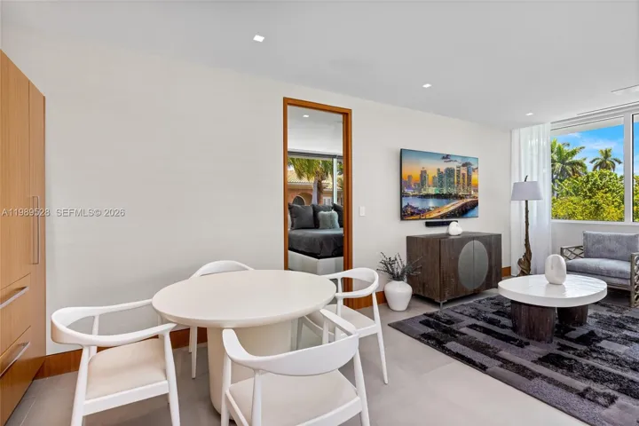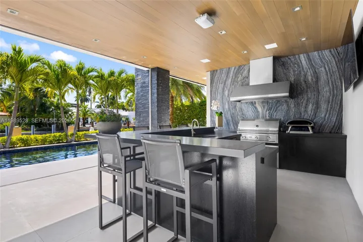 Outdoors, a lap pool and spa sit along the water’s edge, framed by manicured landscaping, capturing a refined expression of South Florida waterfront living.