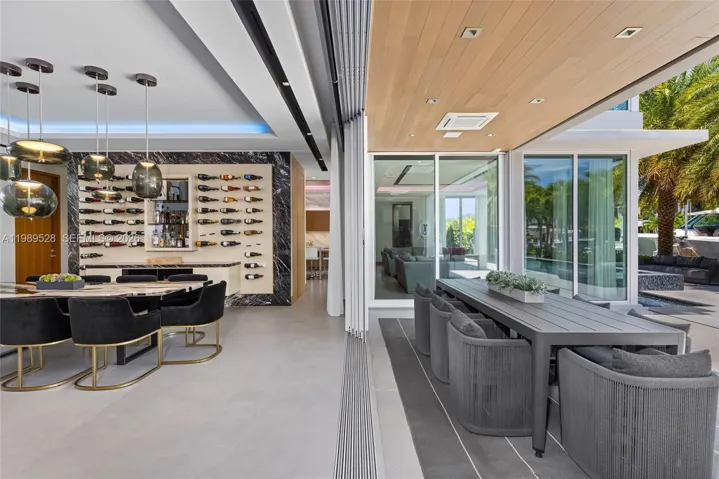 Spanning over 9,200 interior sq ft, the home unfolds with intention. Seven bedrooms, eight full bathrooms, and two bathrooms are thoughtfully distributed across a layout that balances openness with privacy. Voluminous living areas are framed by water views, while more intimate spaces offer a sense of retreat.