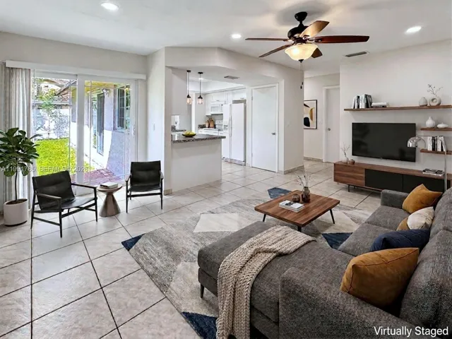 This spacious house is located on a corner lot within a cul-de-sac in the Rainbow Miramar area with 4 bedrooms and 2 bathrooms. The home features a bright interior with a functional layout that includes a living room, dining area, and family room that connect through a centrally located kitchen. The kitchen has been remodeled with white cabinetry, black granite countertops, and white appliances. The home has a split bedroom floor plan with the primary bedroom located on one side for added privacy. Bathrooms have been partially updated and the bedrooms feature wood style laminate flooring. House includes a spacious yard with room to add a pool. Additional improvements include a newer roof, newer A/C, and newer water heater. House is ready for it’s new owner to make it their own. House is in a No HOA community and is conveniently located close to the Florida Turnpike, shopping, and dining.
